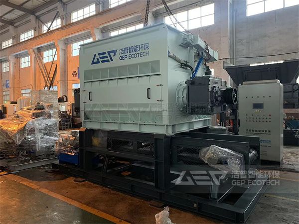 此次发货的除了双轴撕碎机、链板输送机、皮带输送机、自卸式除铁器、脉冲除尘器、智能化集中控制柜等经典生产线所需设备外,最显眼的莫过于GSS系列欧版单轴细碎机。它由电机+齿轮箱减速机提供驱动力,可将物料一次性加工至较小粒度,是各种固体废弃物细碎作业不可或缺的产品。