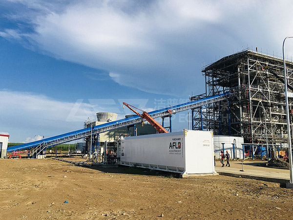 农林废弃物沿着金属链板输送机依次进入双轴剪切式破碎机,由上方的压料器推入破碎机内进行破碎处理。破碎机运行时,GI智能监测系统暂停链板输送机的运行,输送机上暂存部分原料,以保证原料依次连续足量供应,避免了因生物质原料堆积在破碎机仓口造成的设备故障。破碎后的生物质原料集中汇集到一条出料输送机上,输出的生物质燃料待下一步工艺处理。