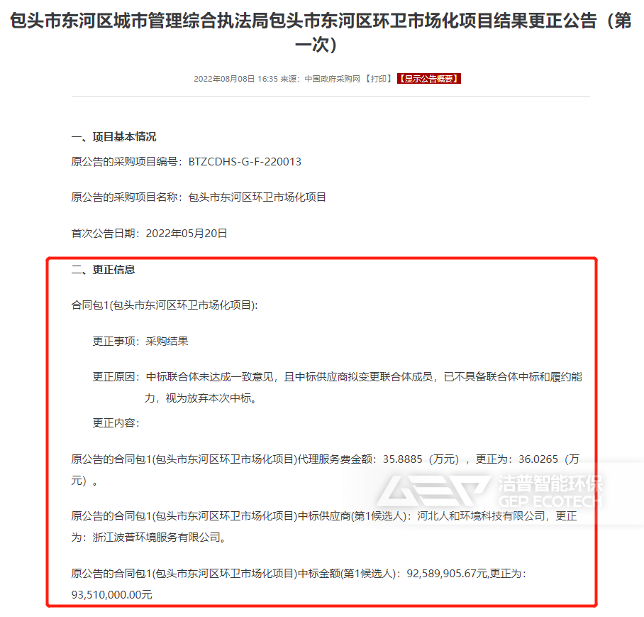 继河北定州20亿生活垃圾处理项目竞标操作遭质疑之后,曾参与该项目投标的另一家企业又在内蒙古包头市某执法局的文件中出现。根据文件说明,该环境公司中标后迟迟无法签订合同,且中标联合体的三家公司不能达成统一意见,有变更联合体打算,依据招投标法,该联合体被视为放弃本次中标,由第二中标候选单位递补中标。