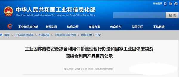 近日,工信部节能与综合利用司对外发布了《工业固体废物资源综合利用评价管理暂行办法(征求意见稿)》(简称《办法》)和《国家工业固体废物资源综合利用产品目录(征求意见稿)》(简称《目录》)。《办法》指出,开展工业固体废物资源综合利用评价的企业,可依据评价结果按有关规定申请暂予免征环境保护税及相关产业扶持等优惠政策。