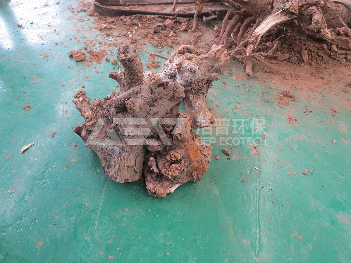 由于低(200-300 rpm)的轴转速和巨大的扭矩,剪切式破碎机很容易破碎任何种类的木材,配合压料器使用可以轻松破碎大直径的树根树墩,所以剪切式破碎机常常被用作树根树墩破碎机。GDB双轴剪切式破碎机由于其高性价比,超长服务寿命更是得到了客户的广泛认可。下面让我们通过图片来看看它破碎树根树墩的效果吧。