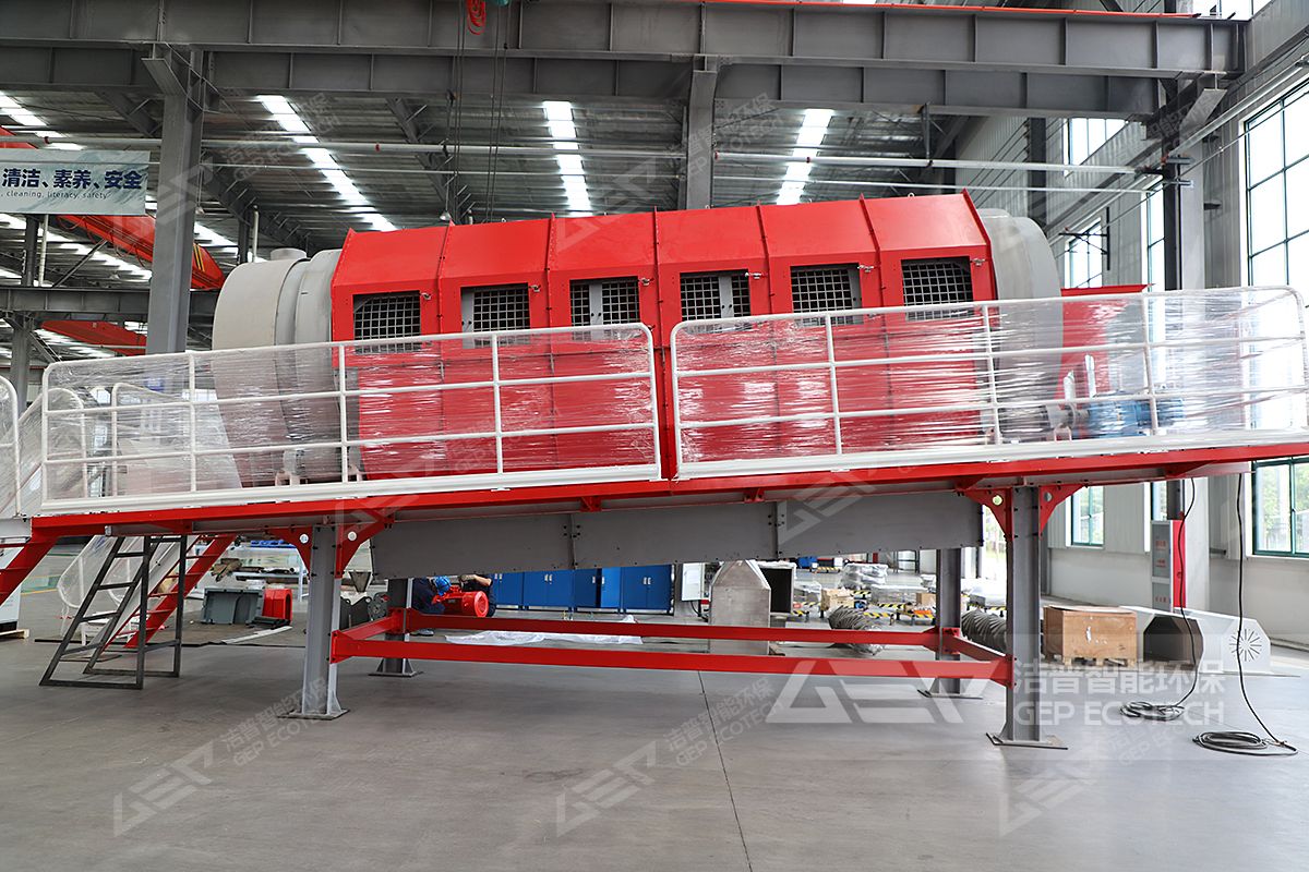 沙土除掉以后,轻物质需要经过一级或者两级破碎设备,把这些塑料,纺织物、泡沫等破碎到5-10公分左右的尺寸,主要用到的是双轴剪切破和单轴细破碎机。这时候经过除杂破碎的轻物质就可以当做产品售出了,可以卖给水泥厂或者电厂当替代燃料。