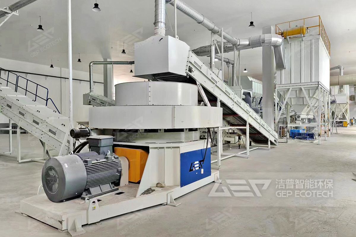 城镇居民产生的家居大件垃圾体积大、密度小,但大件垃圾的组成物料多为铁、木材、 皮革、布料、海绵等,非常适合作为回收资源利用,为更好的分类回收利用,本处理线针对大件垃圾破碎分选作出以下方案设计:链板输送机+两级破碎+皮带输送机+风选机+除铁器+RDF成型机+除尘器+电控系统。最终成品为高纯度弹簧钢、木材、RDF燃料棒。