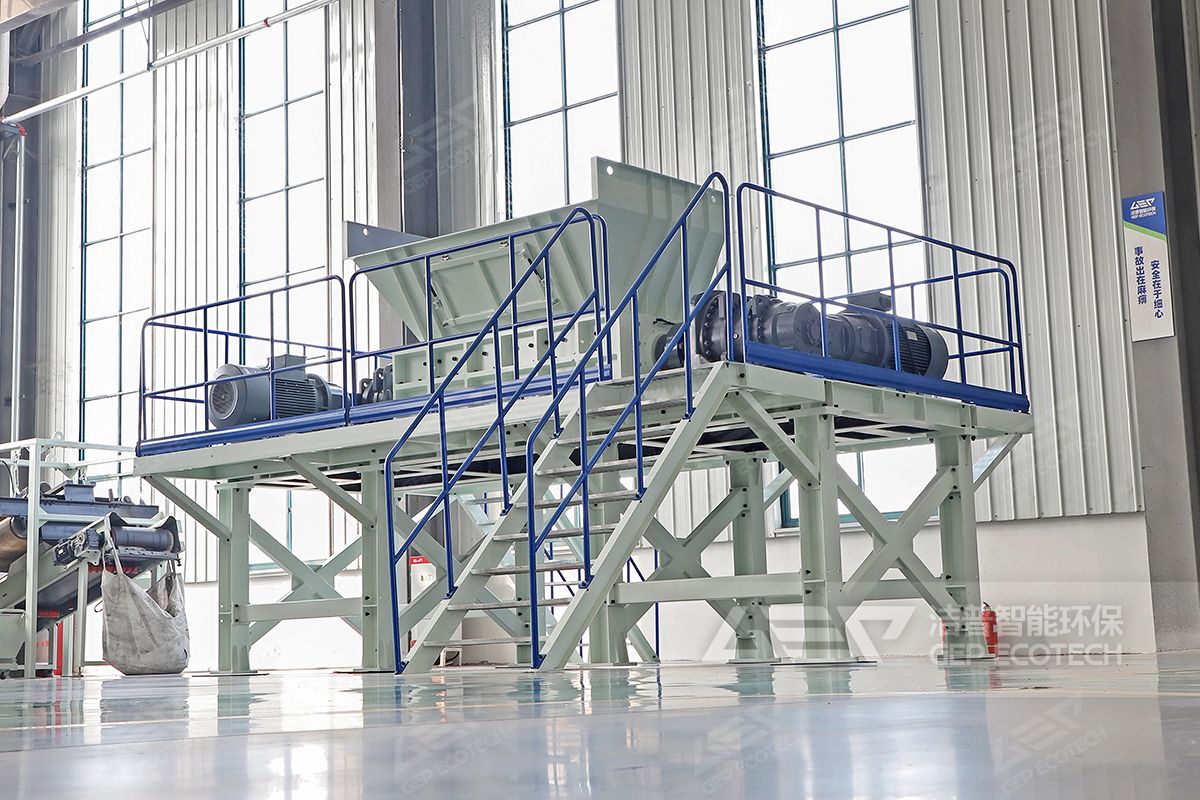 这是核心设备,用于将大件垃圾如废旧家具、床垫等进行破碎处理。洁普环保开发的破碎机通常采用双轴剪切式或四轴剪切式设计,能够处理多种类型的垃圾,并具有良好的破碎能力和稳定性。